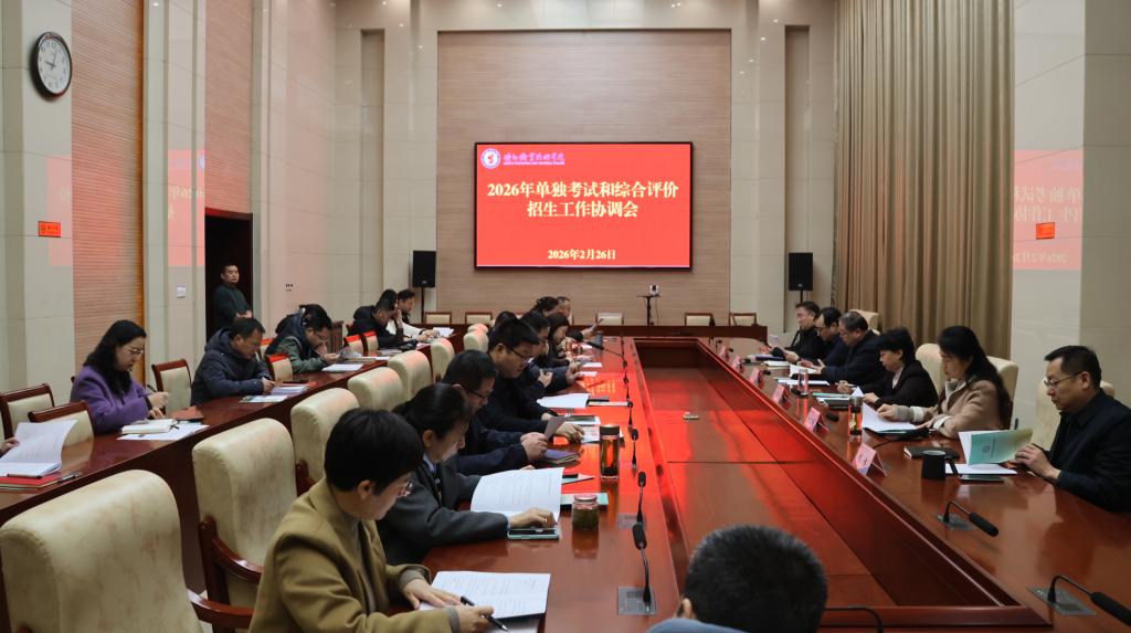 2月26日,我校召开2026年单独考试招生和综合评价招生工作协调会。校领导孟繁营、赵晓静、刘宏杰、朱弘、刘文娟、梁强出席会议,各院系主任及相关职能部门负责人参加会议,会议由刘伟主持。